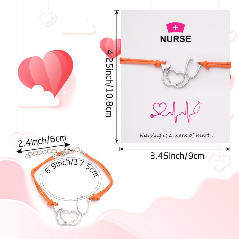 - Nurse Card Bracelets:each Bracelets with a card,tie the bracelet on your wrist, making a wish at the same time. Keep it always on your wrist. According to tradition, when the cord goes off and the bracelet falls away, your wish is ready to come true,the charm bracelets are made of quality wax rope and matte zinc alloy, durable and adjustable, available in 6 different colors