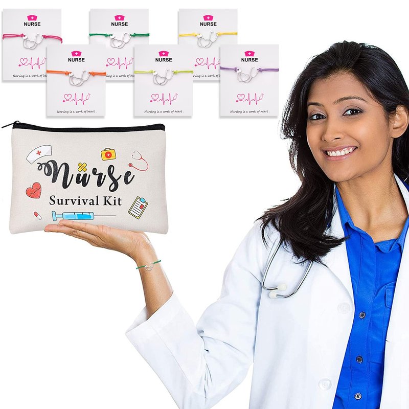 - Package included: you will receive 6pcs nurse canvas cosmetic bags and 6pcs nurse blessing card bracelets and 18 nurse Hair Ties in 6 different colors ,best match for you send to your teacher,provide options to choose different ones according to mood