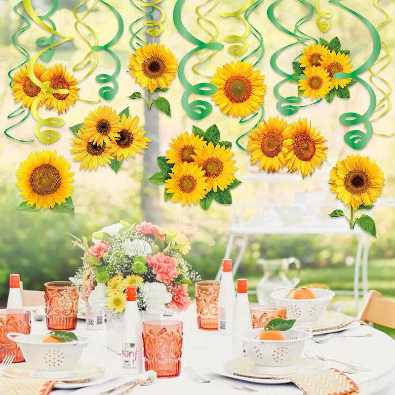 30PCS Sunflower Decorations Hanging Swirls Spring Summer Party Supplies Sun Flowers Party Foil Ceiling Wall Decor for Baby Shower Birthday Party Favors