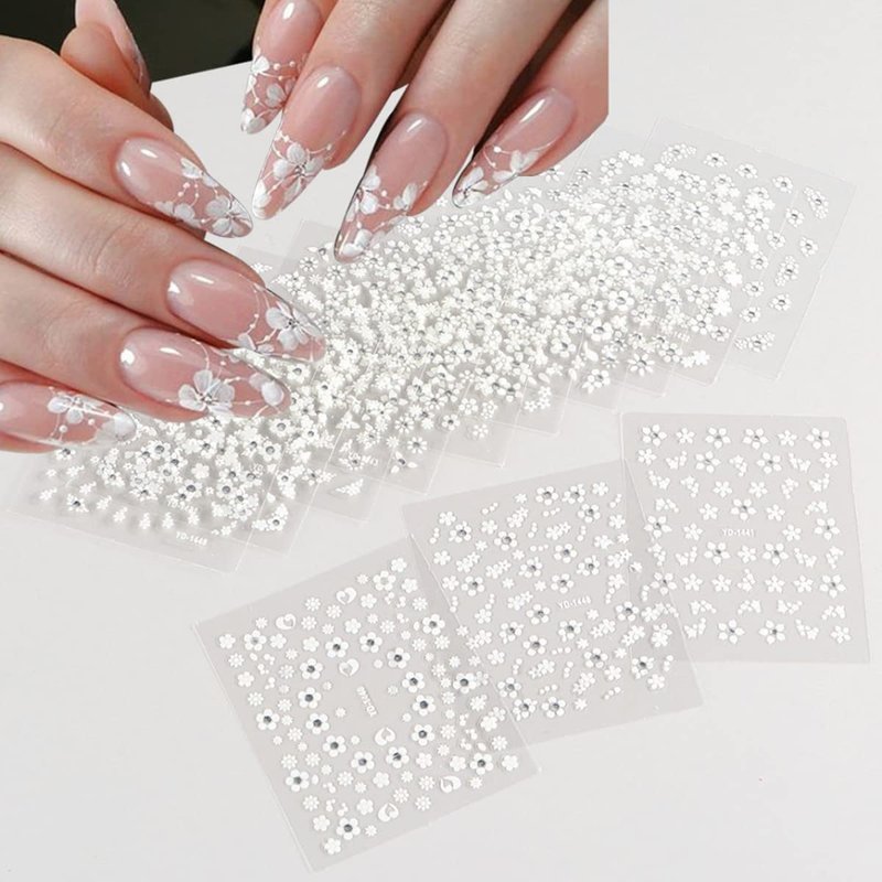 Quantity: 30 sheets white flower nail art self-adhesive stickers