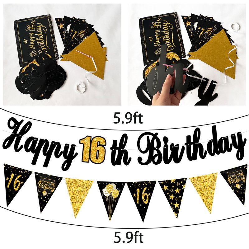30th Birthday Party Decorations for Men Women Black and Gold, Black Gold Happy Birthday Banner Sign 30th Happy Birthday Balloons for 30th Anniversary Birthday Party Supplies Outdoor Indoor Décor