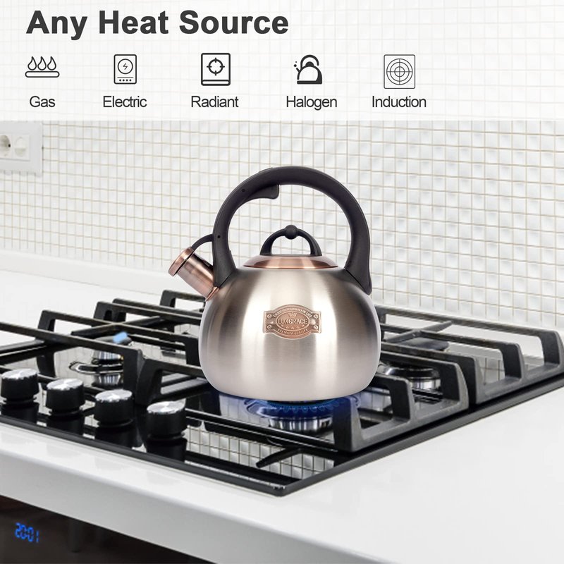 - Perfect Whistling Sound of Teakettle: This tea kettle for stovetop has a tight-fitting lid keeps steam in the hot tea kettle for rapid heating, and realse pleasant whistles sound when water reaches a boil, Loud enough to alarm you when you busy in the next room.