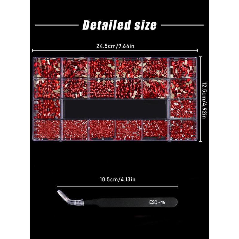 - Amazing Luxury Crystal Set:Includes 20 types AB crystals, 12 kinds of big size ab rhinestone in all 600pcs, 8 sizes round rhinestones in all 2500pcs. The set also includes a dual-ended rhinestone picker dotting pen and a tweezers, which can meet 3 different ways of diamonds picking up or applying.