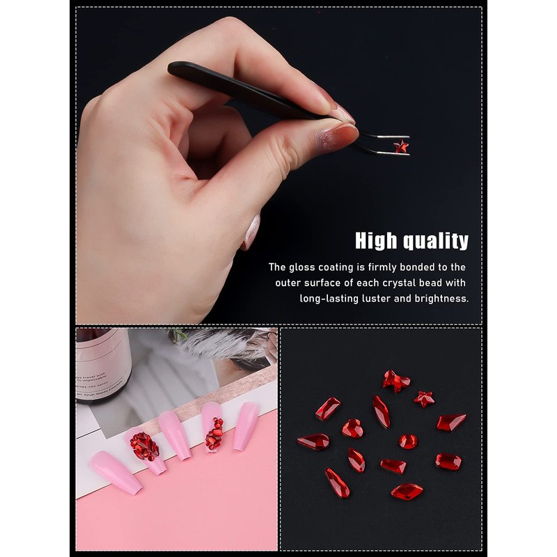 - Quality Glass Craftsmanship: EBANKU rhinestones nail set are made from high quality glass, coupled with superb cutting technology, the surface of the gems look glossy without scratch. Good for placing the cute gems according to sizes and shapes. Perfec for Valentine's Day.