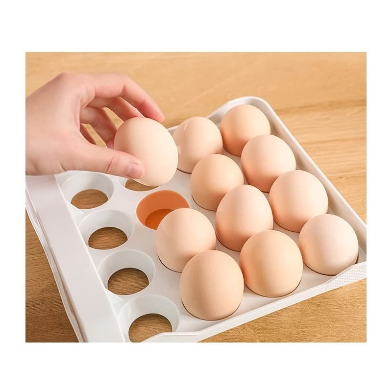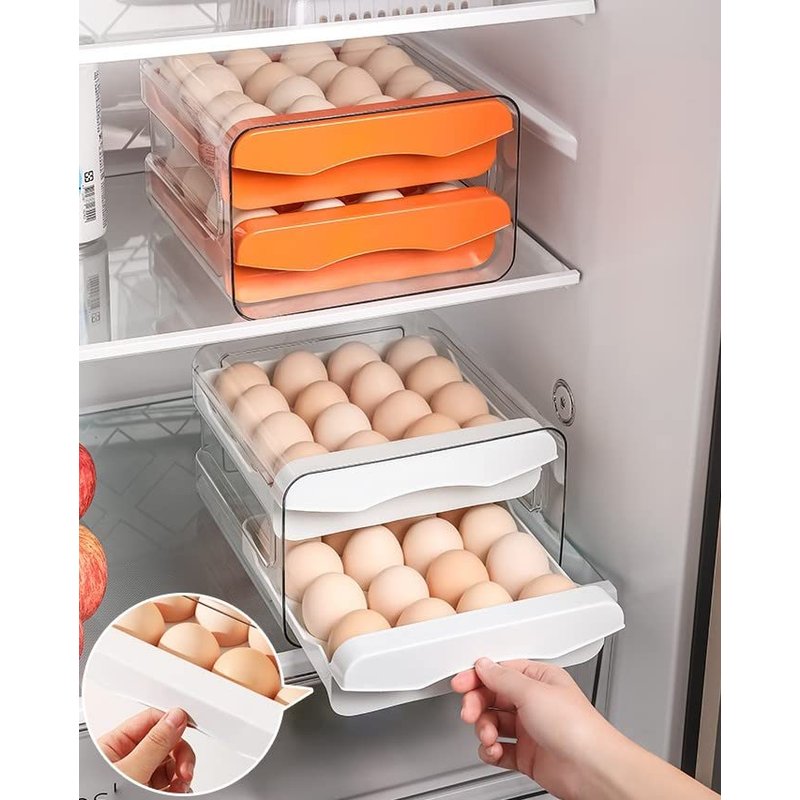 - {Space Saving and Protective} Sturdy organizer measures 22.5*21.5*14cm offering optimization of your space to store up to 32 eggs in two stackable trays. Each drawer type layer holds 16 eggs. This product is both, dust-proof and moisture-proof.