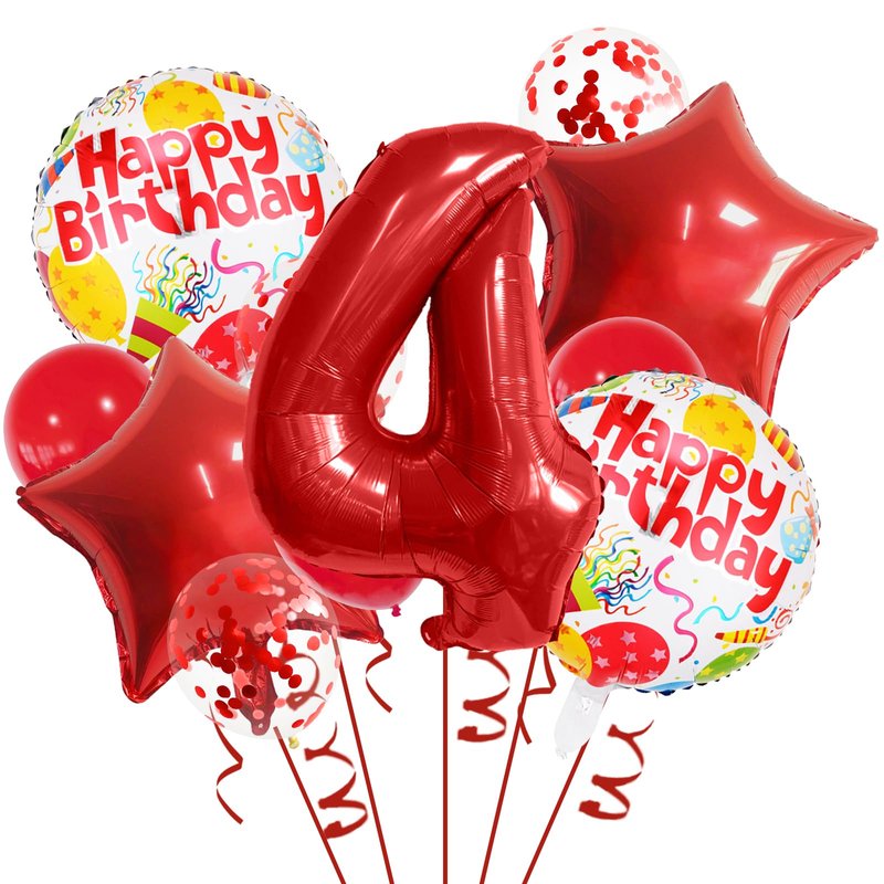 - What's Included -- The package contains 1 pcs 32 inch foil number 4 balloon, 2 pcs 18 inch round balloons, 2 pcs red star foil balloons, 3 pcs red latex balloons, 3 pcs red confetti latex balloons