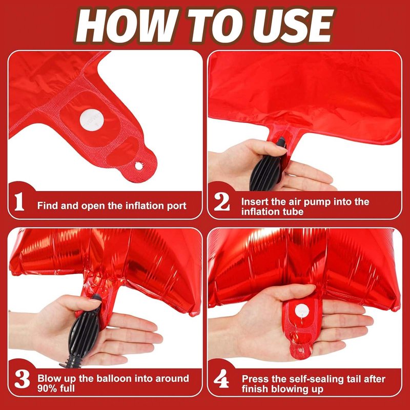 - Important Tips -- To avoid accidental bursting of red 4 balloon, do not inflate the balloons over 90% and keep them away from overheated or sharp places