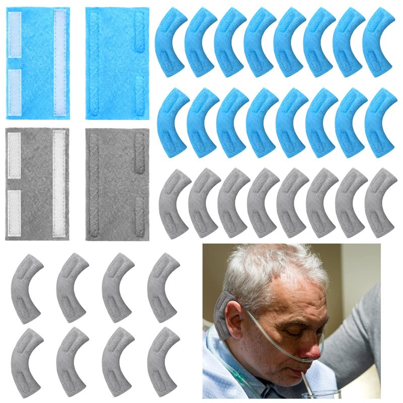 - Items Sent to You: there are a total of 16 pairs of oxygen cannula ear cushions in the package for you, 32 pieces in total, coming in 2 colors, blue and grey; Adequate quantity and assorted colors can satisfy your various demands, suitable for the elderly, children and oxygen users