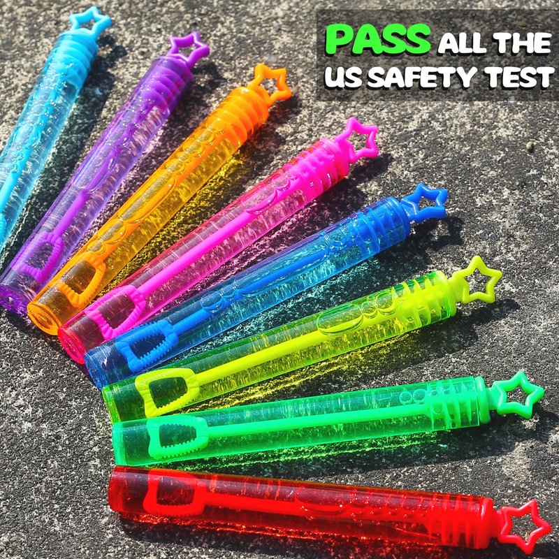- Riskless Bubble Solution: The design prevents the bubble wand from leaking and keeps kids' hands clean, easy to twist and untwist for over 3 years old. Pre-filled 0.2 oz non-toxic, odorless soap solution are safe for little child's skin.