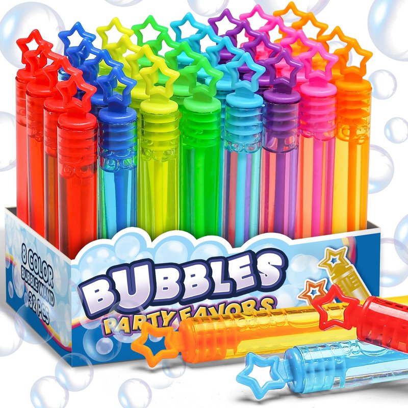 - Colorful Star Bubble Wands: includes 32 small star-shaped bubbles in 8 eye-catching vibrant rainbow colors - red, pink, yellow, green, orange, purple, blue, and dark blue. Easily kept the kids occupied with bubbles for a few hours.