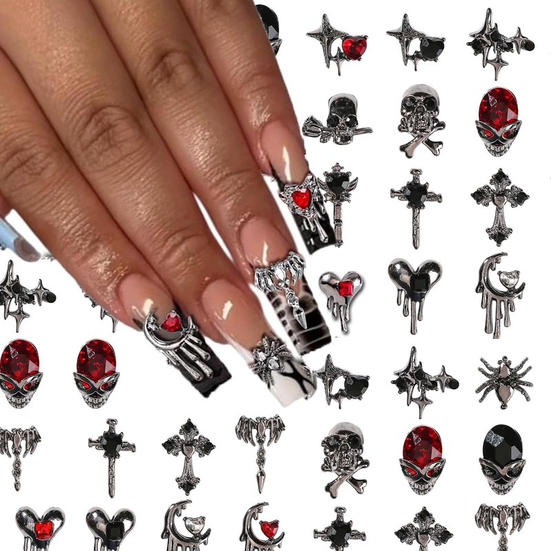 - 【3D Nail Charms】You'll get 32 Pcs Halloween nail art charms alloy spider skull nail jewelry accessories,sufficient quantity and rich styles can meet your various needs in DIY nail art or any other handmade projects.NOTE: The glue is NOT included.