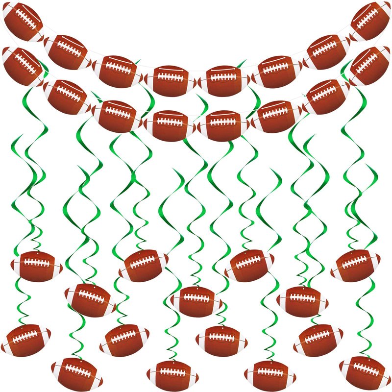32 Pieces Football Party Decorations Includes 30 Pieces Hanging Swirls and 2 Pieces Football Banners Sports Football Theme Party Supplies for Kids Adults Office Bar Football Birthday Party Decor