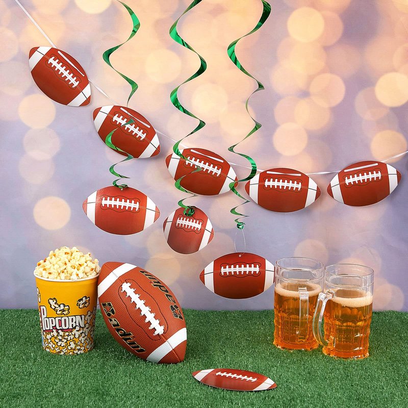 You can use these football garland swirls individually or pair with these football cards, which can be placed on home ceilings to enhance the party atmosphere, and a nice backdrop for taking photos.