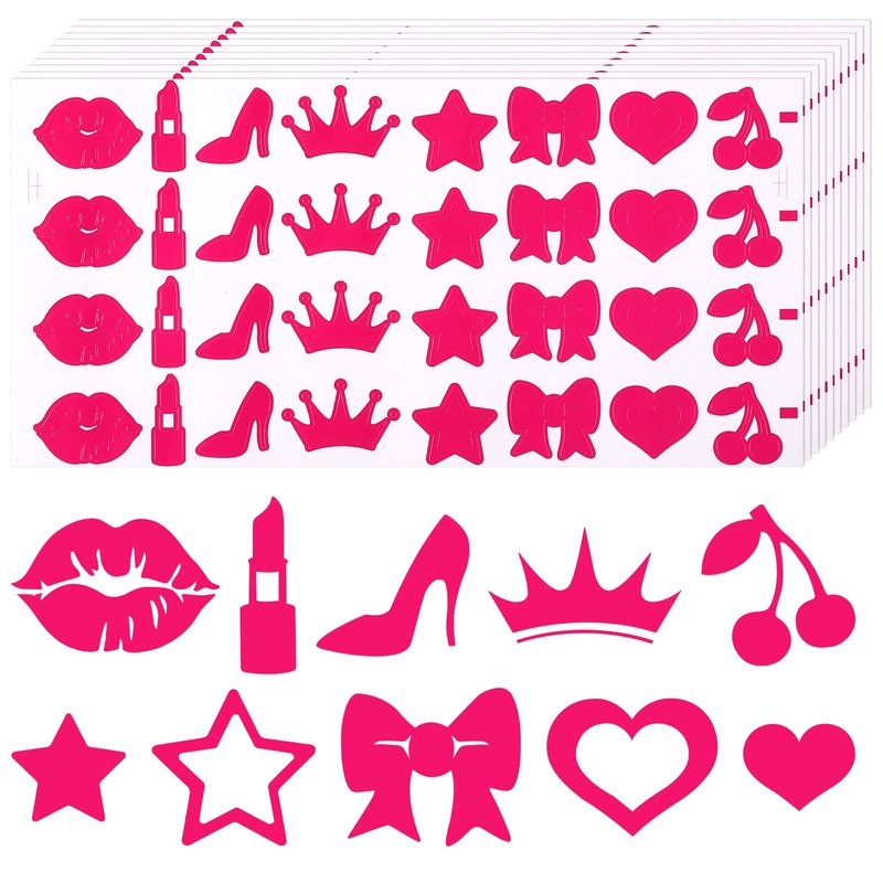 - Cute Design: Our tanning sunbathing stickers adopt hot pink color and are designed in patterns such as heart-shape, lip-shape, pentagram, bowknot, cherry shape, etc., attractive and exquisite. You can choose any pattern according to your preference.