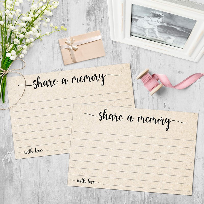 321Done Share a Memory Card (50 Cards) 4" x 6" - for Celebration of Life Birthday Anniversary Memorial Funeral Graduation Bridal Shower Game - Made in USA - Kraft Tan
