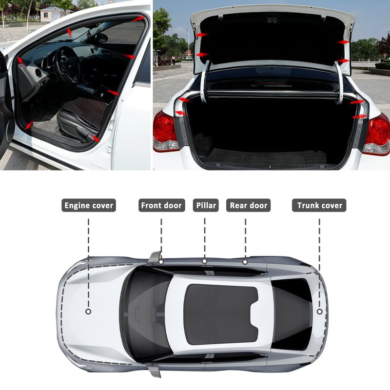 - ⌛ Easy to Install: This car weather stripping is easy to install, no glue required. Just peel off the surface of the adhesive backing and stick it along the position you need to seal, you can cut it freely. The adhesive backing is non-marking and the adhesive structure is solid, tearing off without leaving traces and does not hurt the car paint.