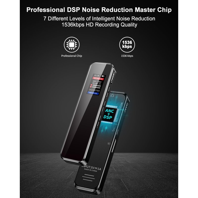- 【High-Definition Sound Recording】: The digital voice recorder features seven levels of noise reduction for clearer recordings. It supports multiple pre-set formats (wav 128kbps, 192kbps, 512kbps, 1024kbps, and 1536kbps) and is perfect for capturing lectures, meetings, and conversations with exceptional sound quality.