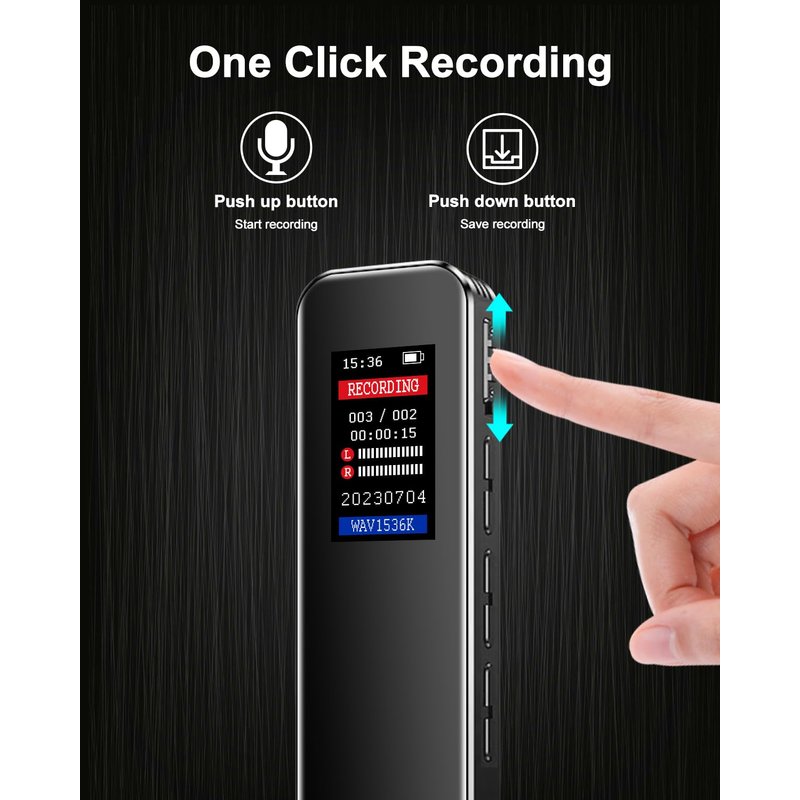 - 【32GB Voice Activated Recorder】 : Stores 2324 hours of recording, or 10,000 songs. This recorder device can set voice decibels at 7 different levels . When the voice-activated mode is on, the voice recorder only records automatically when there is sound and pauses recording when there is no sound, which saves storage space in the recorder.