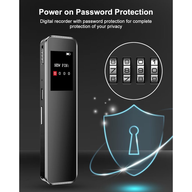 - 【Keep Your Recordings Safe and Secure】: Our password-protected voice activated recorder the most reliable way to keep your recordings safe and secure. With a simple 4-digit PIN, you can rest assured that your private conversations, important meetings, and creative ideas are safe from prying eyes.