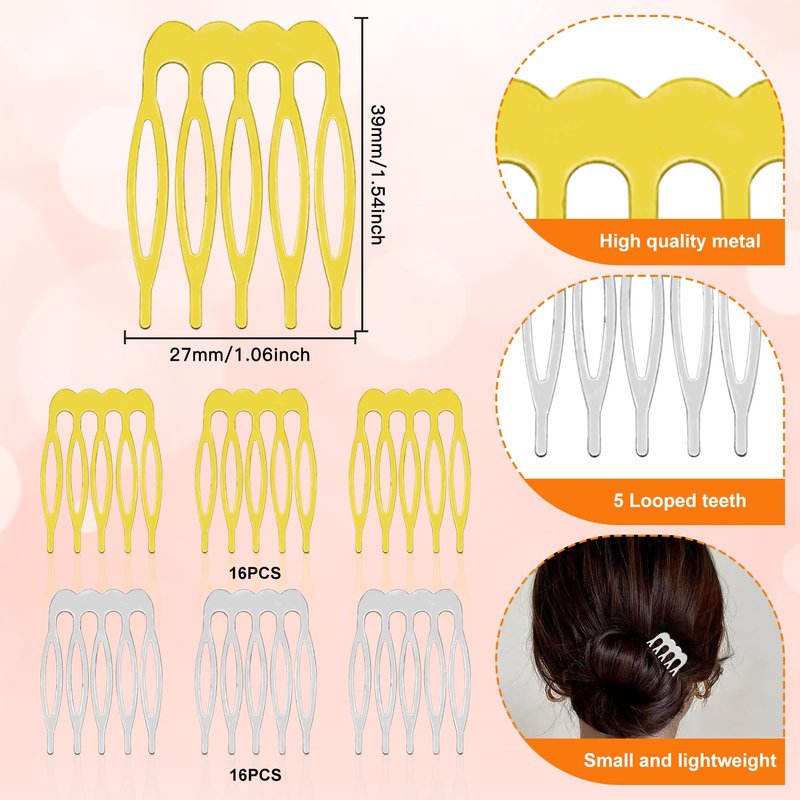 - 【Quality Material】This 5 teeth hair clips are made of metal material, rust resistant, long-lasting and sturdy to wear. The smooth surface and rounded tips prevent any damage to your delicate hair when sliding into a bun or updo, allowing you to enjoy these combs for various styling purposes.