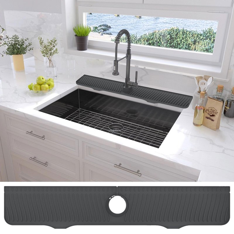 - 【Super Size】32 inch Kitchen Sink Splash Guard is larger than others and catches more water drips. The length of the faucet mat can be cut according to the sink. The length is suitable for large sinks. (31inch. 32inch. 33inch. 34inch)