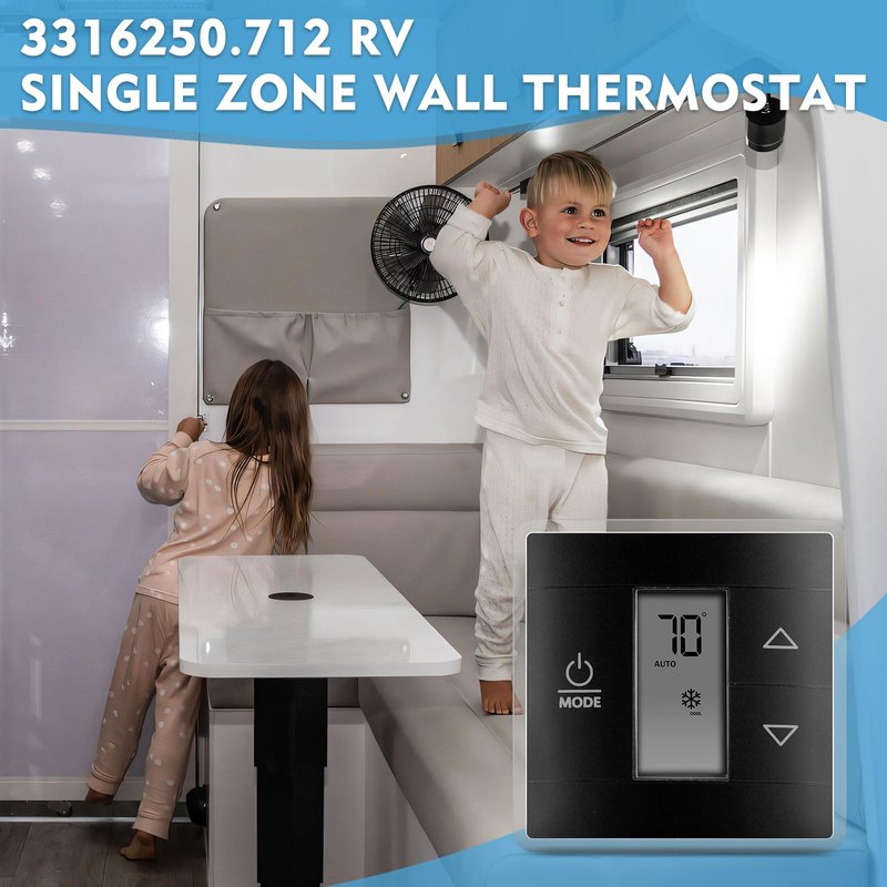 3316250.712 RV Single Zone Wall Thermostat Fit for Dometic, w/Digital Temperature Display Compatible with Camper RVs and Trailers, Black.