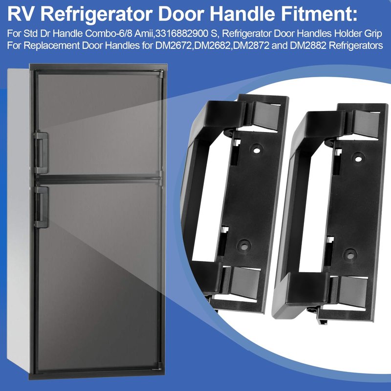 - Perfect Fit : Upgraded RV fridge door latch compatible with Dometic 3316882.900, 3316882900 S,Std Dr Handle Combo-6/8 Amii, Refrigerator Door Handle. The RV refrigerator door handle is replacement for DM2672, DM2682, DM2872, and DM2882 refrigerators plastic grip. PLEASE NOTE that DM2672 refrigerator door latch look similar to other models, but they do not have the same specs, please confirm that the model you need to buy matches our model before ordering.