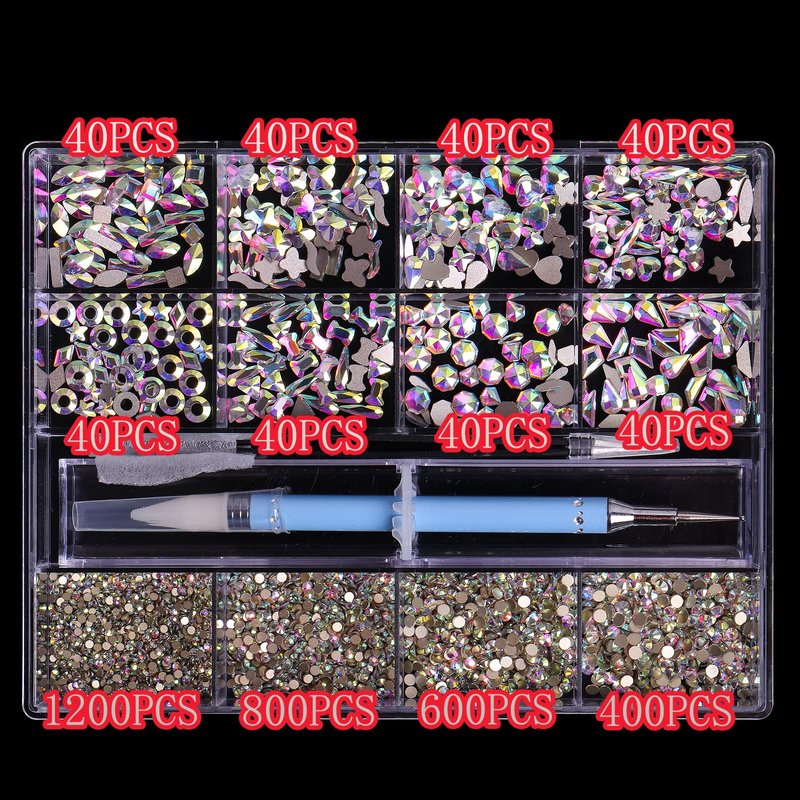3320pcs total for 28 sizes of flat back crystals AB nail rhinestones