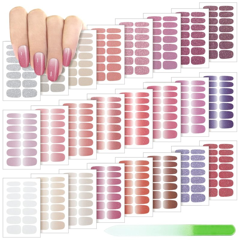 - Package includes: there are 24 sheets full wrap nail stickers in different styles and sizes in a package, each sheet accounts for 14 pieces nail decals, total in 336 pieces; And there is 1 piece nail file in the pack, which IS enough to fit most people's fingers and allow you to design a variety of styles of nail works
