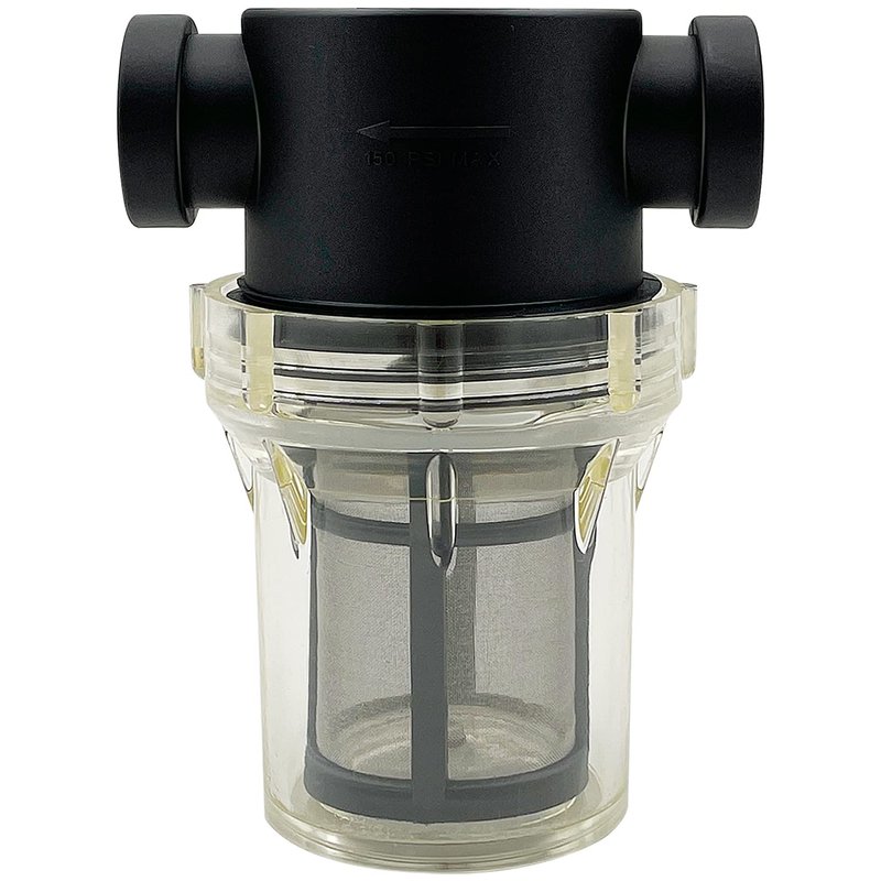- Clear filter bowl to see when screen needs cleaning