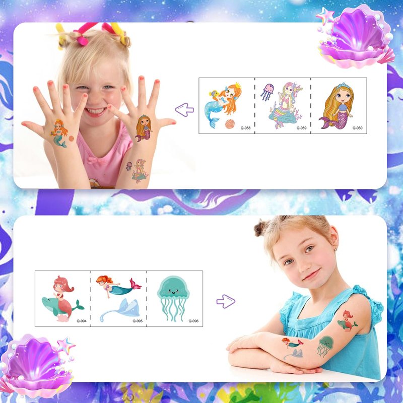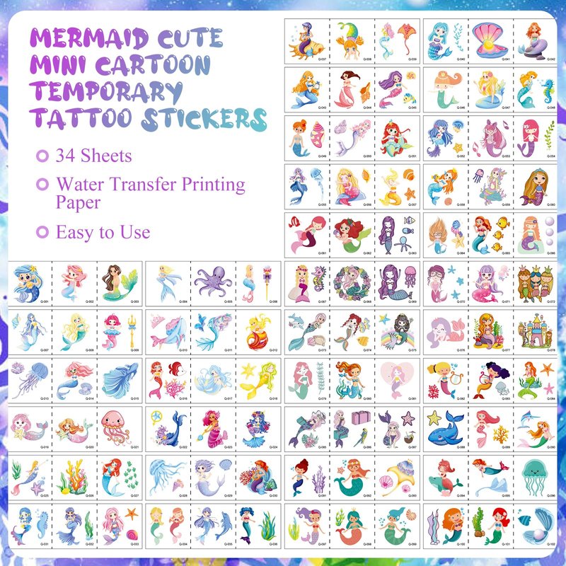 - Cute and Eye-Catching Designs: Featuring adorable cartoon patterns like mermaids, sea animals, and more, these kids temporary tattoos are sure to delight.
