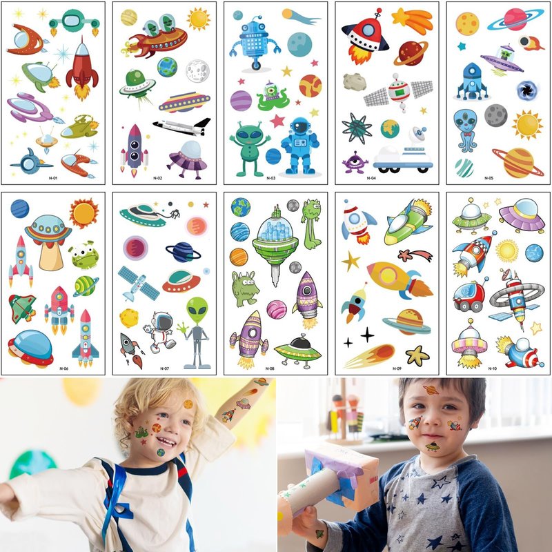 - Wide Application : You can stick these tattoo stickers on any part of your body, such as your arms, shoulders, back of your hand, etc., freely express your creativity, create your own space style, and add infinite fun to birthday parties or other special occasions.