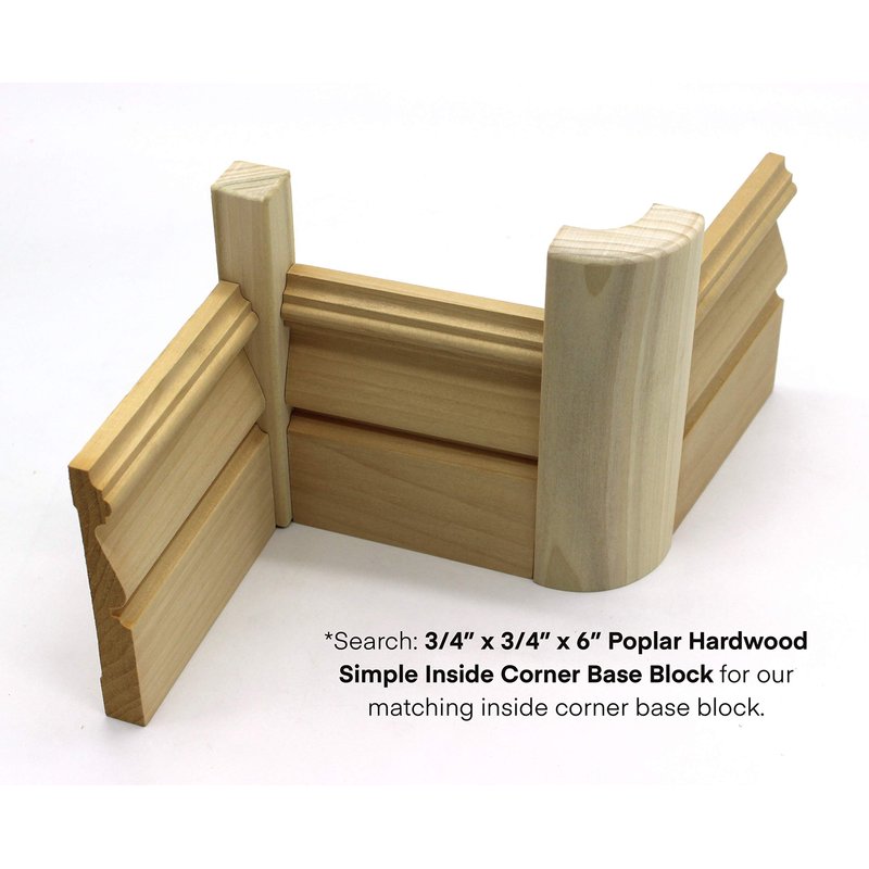 3/4" x 2 1/4" x 6" Poplar (paint grade) outside corner base block. These blocks create a decorative detail that allows a clean, flowing line around a rounded corner. It prevents the need of an outside miter cut or the need for a double mitered cut (which both leave unsightly gaps). They fit with baseboards up to 5/8" thick by 5 1/2" tall, and can be cut shorter for a shorter baseboard. Unfinished; ready to be painted or stained. Made in the USA by Bonneville Manufacturing. RETURN POLICY: In order to receive a refund, product must be returned in sufficient packaging to eliminate the possibility of damage. All products must be unaltered (unpainted, unstained, uncut) and suitable for resale. When we receive the product and ensure that the product is in the same condition that was originally shipped, we will issue a refund for the product minus the cost for the original shipping, handling, and return shipping (unless the reason for return is due to an error caused by the supplier). Product must be shipped back within 30 days of receiving it for a refund to be given.