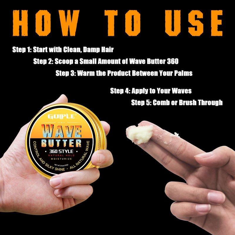 - 【Premium Wave Definition】Wave Butter is crafted with precision to elevate your wave game to new heights. Formulated specifically for men, this premium 360wave grease is designed to define and enhance the natural pattern of your waves, giving your hair a sleek and polished look.