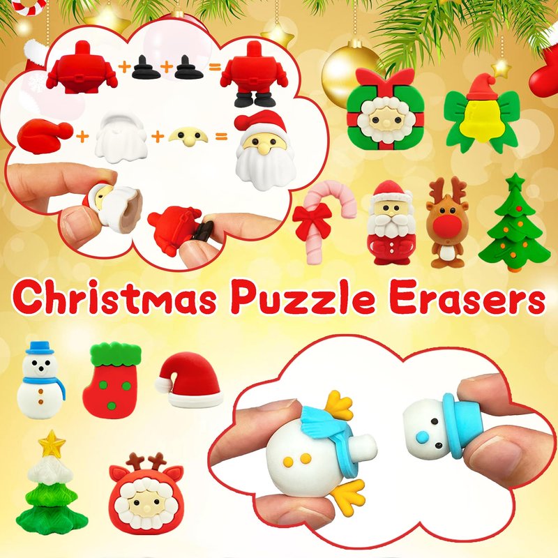 - Puzzle Pencil Erasers:35 Pack 3D Christmas Erasers have a realistic and cute shape,each one can be taken apart and reassembled,it's a fun puzzle toys.