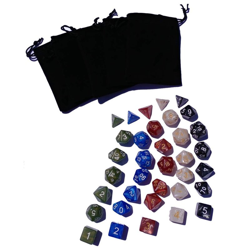 - Also comes with five dice bags so you can easily store your dice, or distribute them among friends.