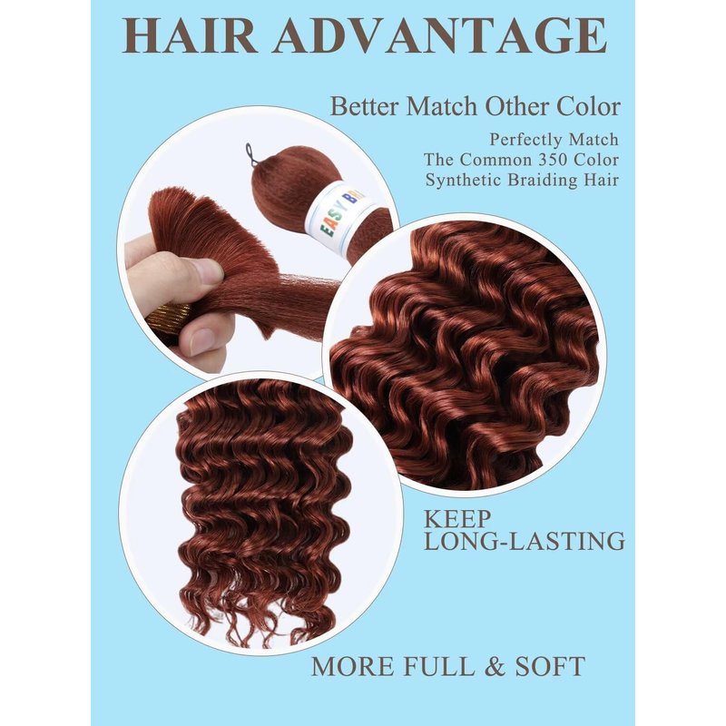 350 Braiding Hair 1 Bundle 50g 16 Inch Deep Water Wave Bulk Human Hair for Braiding 10A Brazilian Virgin Copper Curly Human Hair Extensions for Boho Braids Wet and Wavy Dark Ginger Braiding Hair