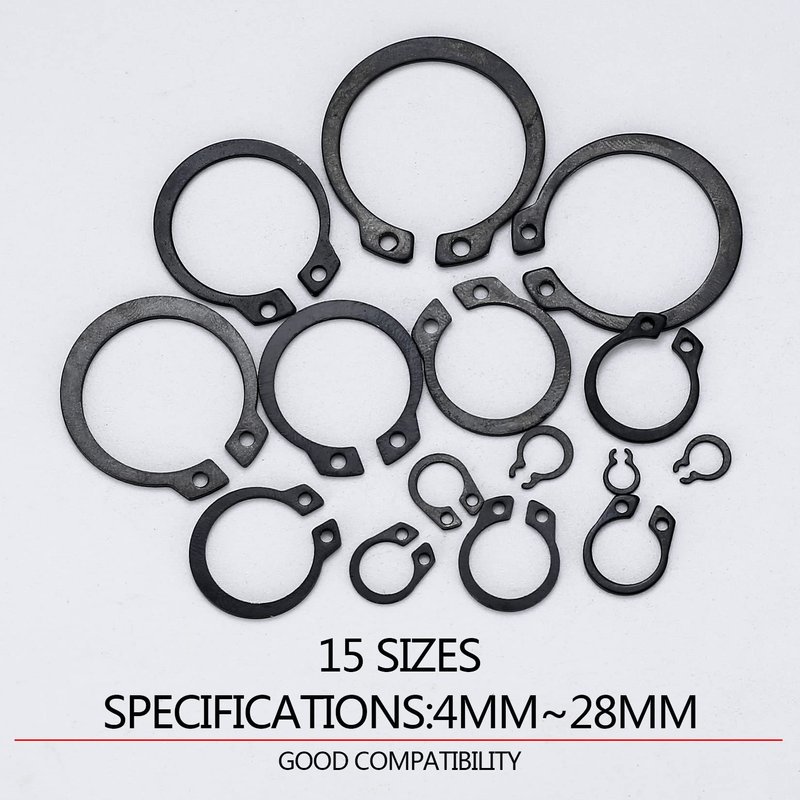 - Package Includes: You will receive a total of 350 pcs c retaining clips, in the size of 4mm, 5mm, 6mm, 7mm, 8mm, 10mm, 12mm, 12mm, 14mm, 16mm, 18mm, 20mm, 22mm, 24mm, 26mm, 28mm, used in everything from automotive applications, industrial equipment, machinery, etc.