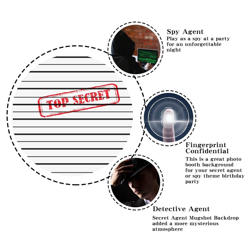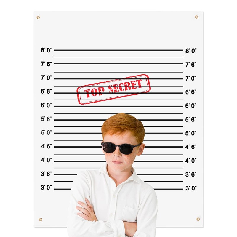 - 5.Perfect for Any Celebration:This is a great photo booth background for your secret agent or spy theme birthday party. It comes with a Top Secret stamp on a classic mug shot height chart.Also suitable for wedding, birthday, bachelor party, studio photography background.