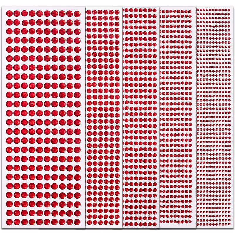 3555Pcs Gems Stickers for Kids Crafts, Self Adhesive Rhinestone Stickers for Hair Face Body Makeup, Bling Stick on Jewels Stickers Decorative Diamond DIY Craft 5 Sizes 3/4/5/6/8 mm(Red)