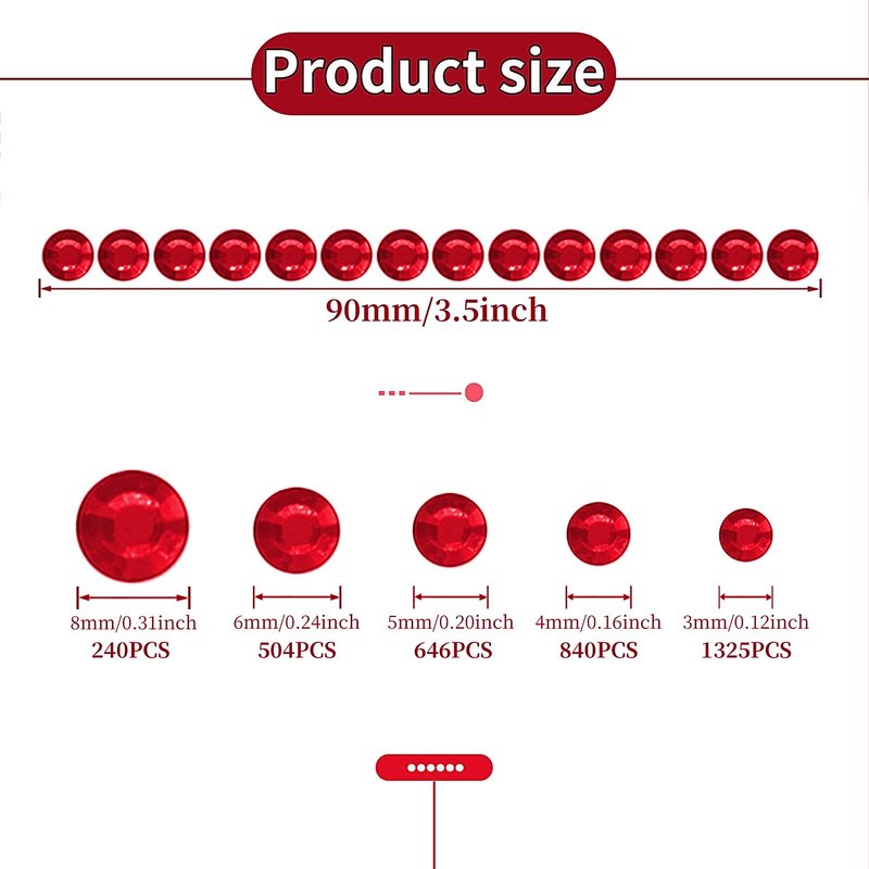 - 【Set Includes】You will get 3555 pieces gems rhinestones stickers in 5 sizes, including 1325 pcs of 3mm, 840 pcs of 4mm, 646 pcs of 5mm, 504 pcs of 6mm, 240 pcs of 8mm, enough quantity and assorted sizes to meet your various makeup and craft projects needsd.