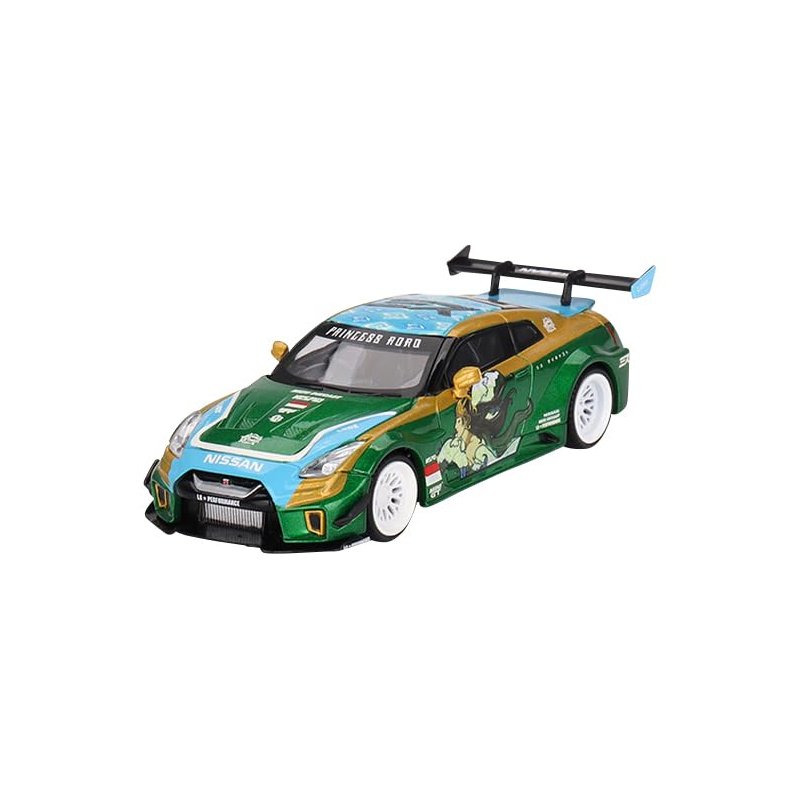 Brand new 1/64 scale diecast car model of 35GT-RR Ver.2 "LB-Silhouette Works GT" RHD (Right Hand Drive) "Princess Roro" Green Metallic with Graphics Limited Edition die cast model car by True Scale Miniatures MGT00650