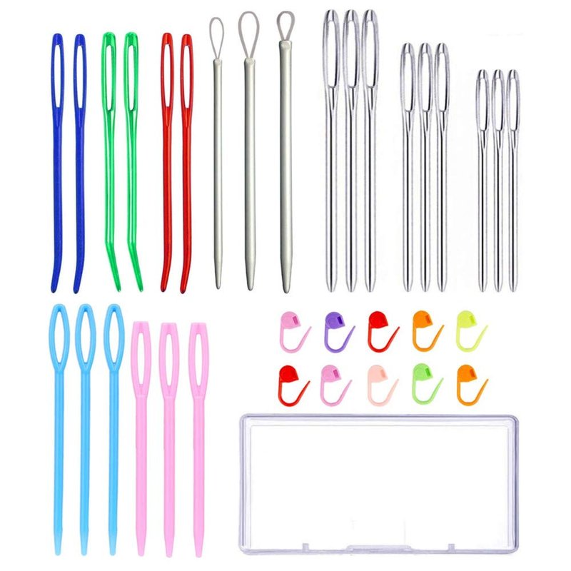 35pcs Yarn Needle Tapestry Needles,Darning Needle Yarn Needles,Big Eye Blunt Knitting Needles with Stitch Markers for Knitting Crocheting