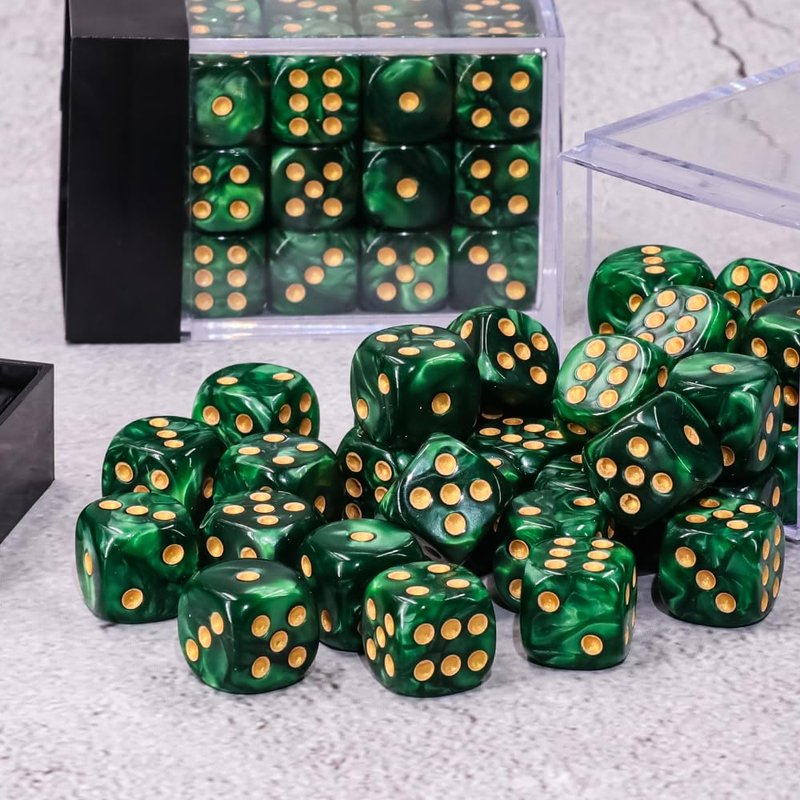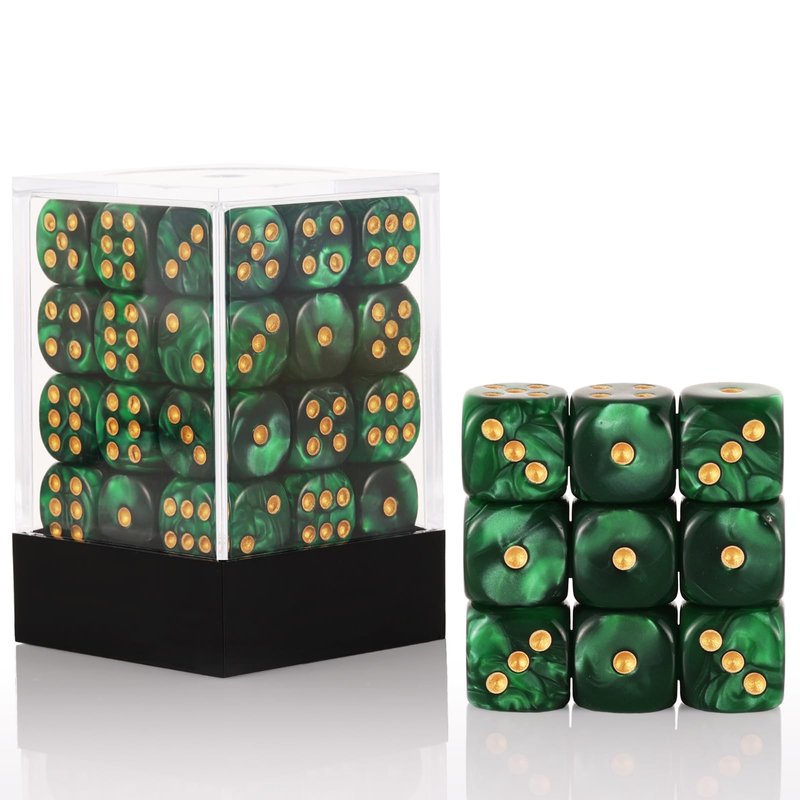 36 of Pack 12MM 6 Sided Mini Dice Set,Pearl Pattern Game Dice Set, 6 Sided Standard Dices for Yahtzee, Bunco or Teaching Math,with Portable Plastic Box(Green Pearl)