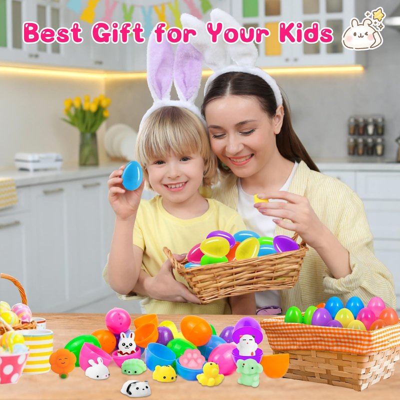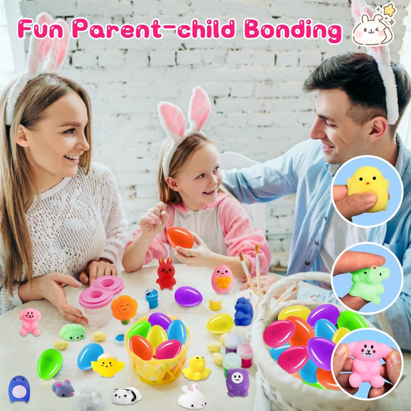 - đ°ăFUN PARENT-CHILD BONDINGă- Prefilled Easter eggs with squishy bulk, not search which mini toy matches your empty Easter eggs by yourself, a big time saver. Plenty of Easter eggs bulk, squishys makes a group play & friends making, also works great as teaching aids, bedtime stories & pretend play props for parents, enjoy happy family time now!