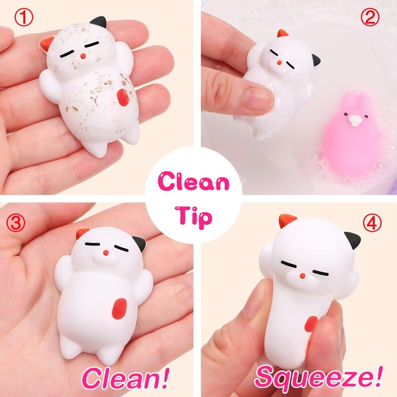 - đ°ăCHILD SAFETY & WASHABLE MATERIALăThe material of Mochi squishies and pop keychain is made of silicone material that complies with US safety inspection, which is stretchy and sticky. They can be easily rinsed with water directly when getting dirty. Durable, waterproof and not easy to damage. Bright colors and realistic appearance, cultivate children's color cognition, stimulate imagination and creativity.