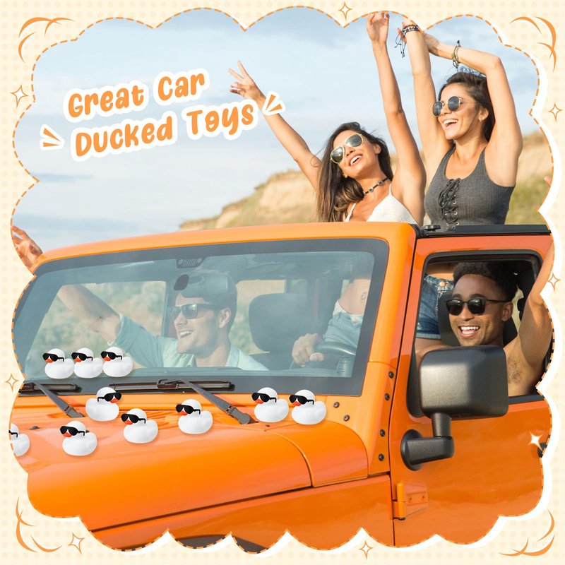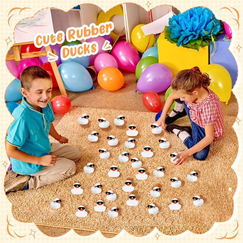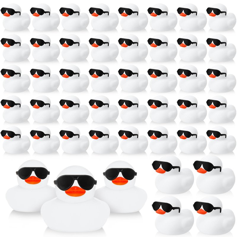 - Products Include: you'll receive 36 white small rubber ducks, paired with 36 black mini glasses, enough to share with your family or friend; Besides, these ducks and sunglasses are separate, you can wear sunglasses on the ducks'eyes, cute and interesting; Note: if the accessories fall off, you can glue them back by yourself