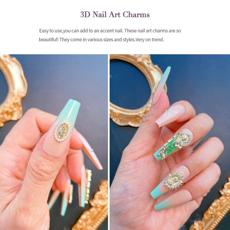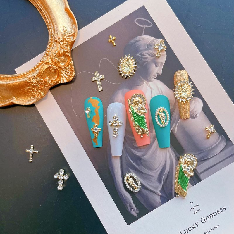 These are metal jesus virgin mary cross nail charms kit so pretty.Have very bling gorgeous glam rhinestones and also have some Elegant and noble pearls,fit for plenty of styles nail art design.