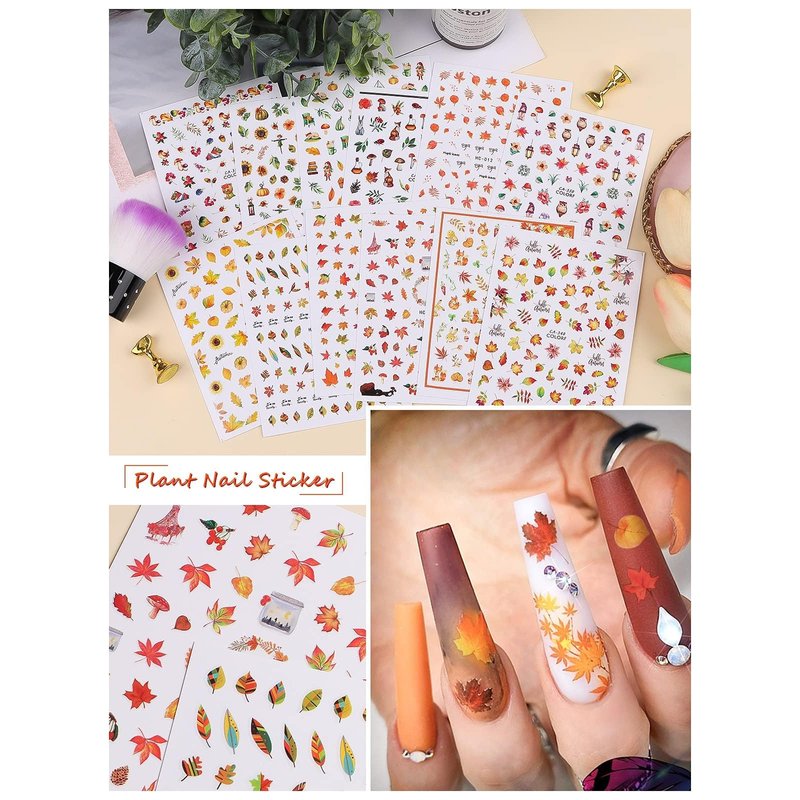 - 🍁 Fall Leaf Nail Art Stickers and Nail Glitter Sequins Set - Package includes 12 sheets of autumn maple leaf nail stickers and 24 boxes nail sequins. Nail decals with cute little bunnies, foxes, owls, bears, squirrels, mushrooms, with autumn style maple leaves, sunflowers and so on very good-looking patterns,which can be used to design your own nail art, nail design, highlights and other thanksgiving design elements.