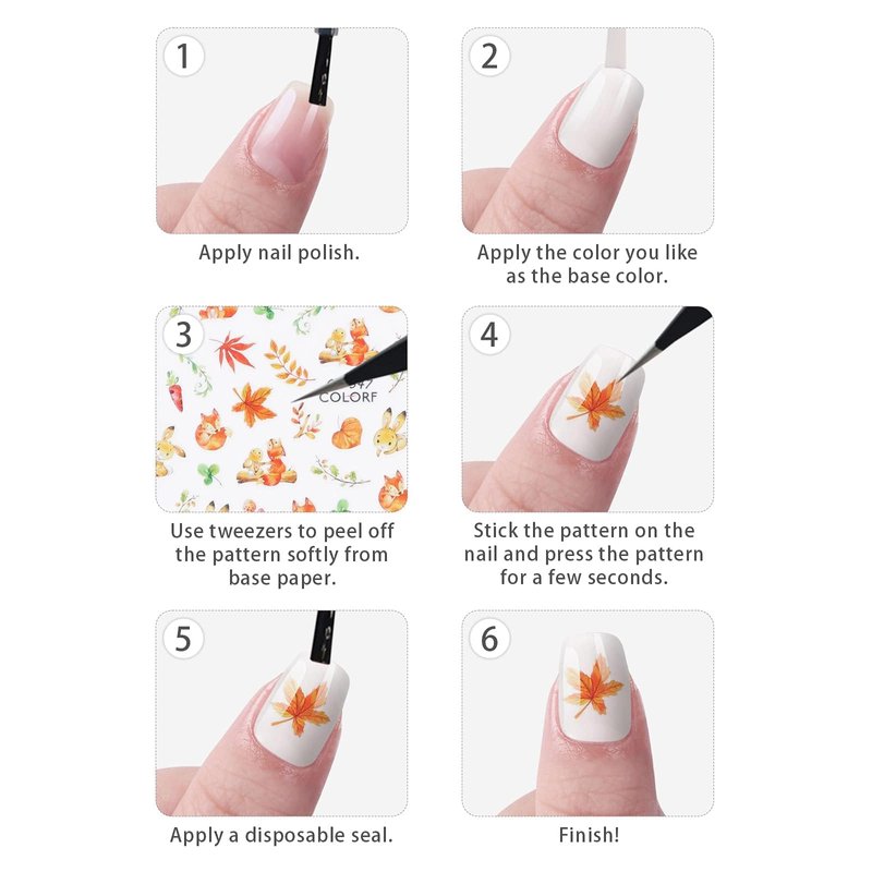 🍁How to use Autumn nail decals:
